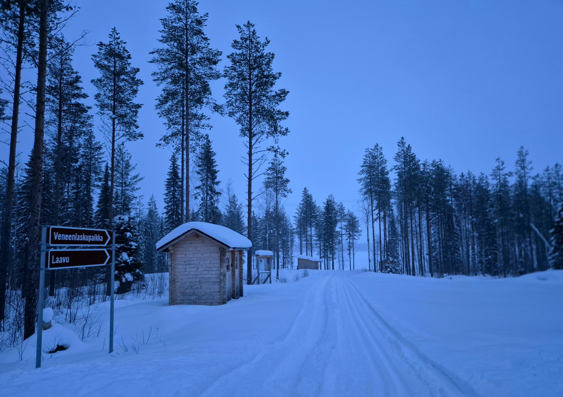 Laavupaikan parkkialuetta ei ole vielä avattu. Laavulle pääsee moottorikelkan uraa pitkin.